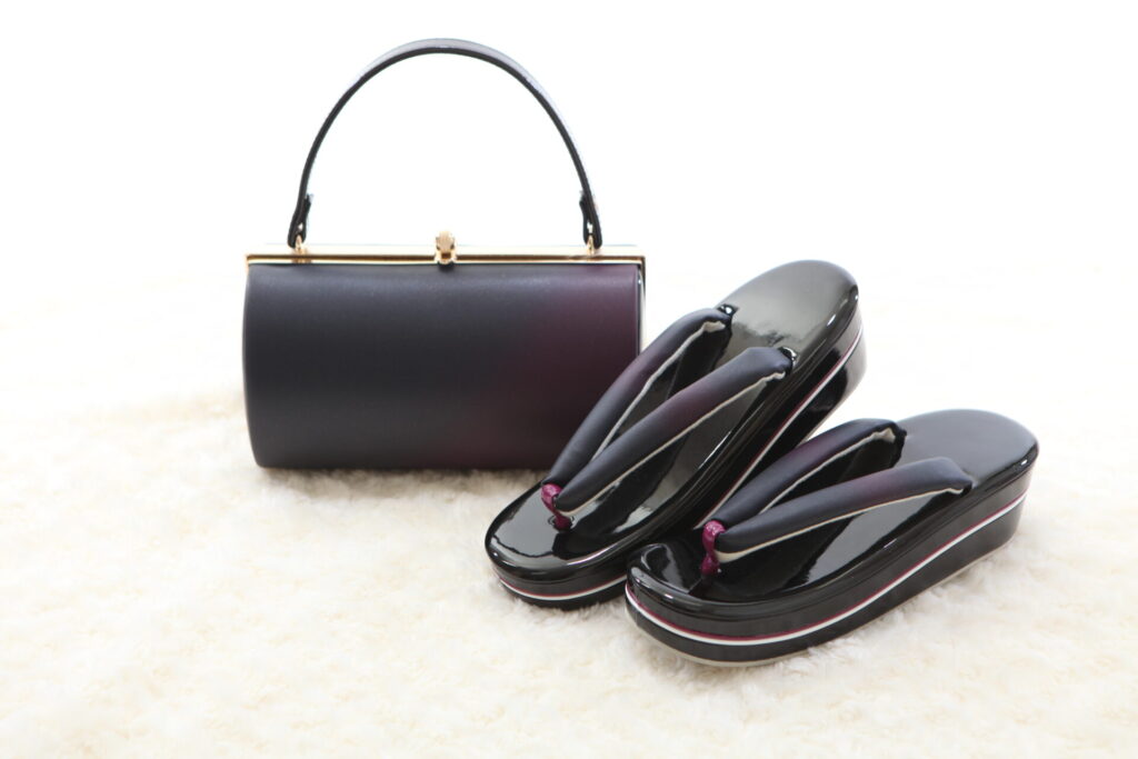 そして、忘れがちなの所が草履バッグです。草履とバッグはセットになっている物が多いのですが、必ず確認していただきたい点は草履です。合皮の場合、経年劣化で鼻緒の裏を触るだけで「ボロボロ」とはがれたり、触ったら「ベタベタ」していたり、草履の底がはがれたりしている場合があります。