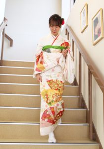 ②腰周りにゆとりがあるので、振袖が下に引っ張られること無く
