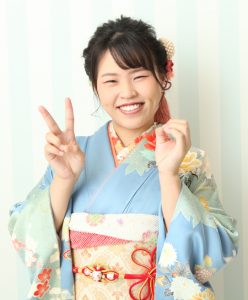 淡い水色の振袖が、お嬢様の優しそうな雰囲気に