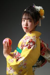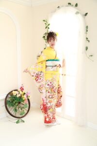 黄色地のお振袖がとってもお似合いのお嬢様です