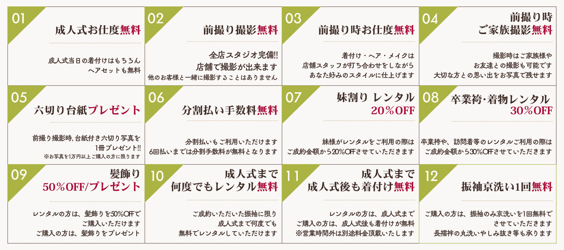 成人式当日の「着付け」「ヘア」をサービス(無料)