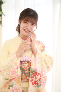 淡い黄色が可愛い振袖